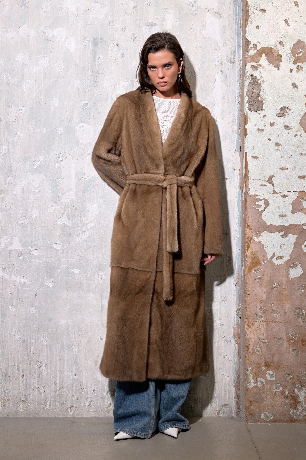 Wrap yourself in opulence with this long Mink Coat, a true expression of timeless luxury. Expertly crafted from the finest genuine mink fur, its rich hue enhances the coat’s natural luster and unmatched softness. The full-length silhouette drapes gracefully, offering both exceptional warmth and refined elegance.